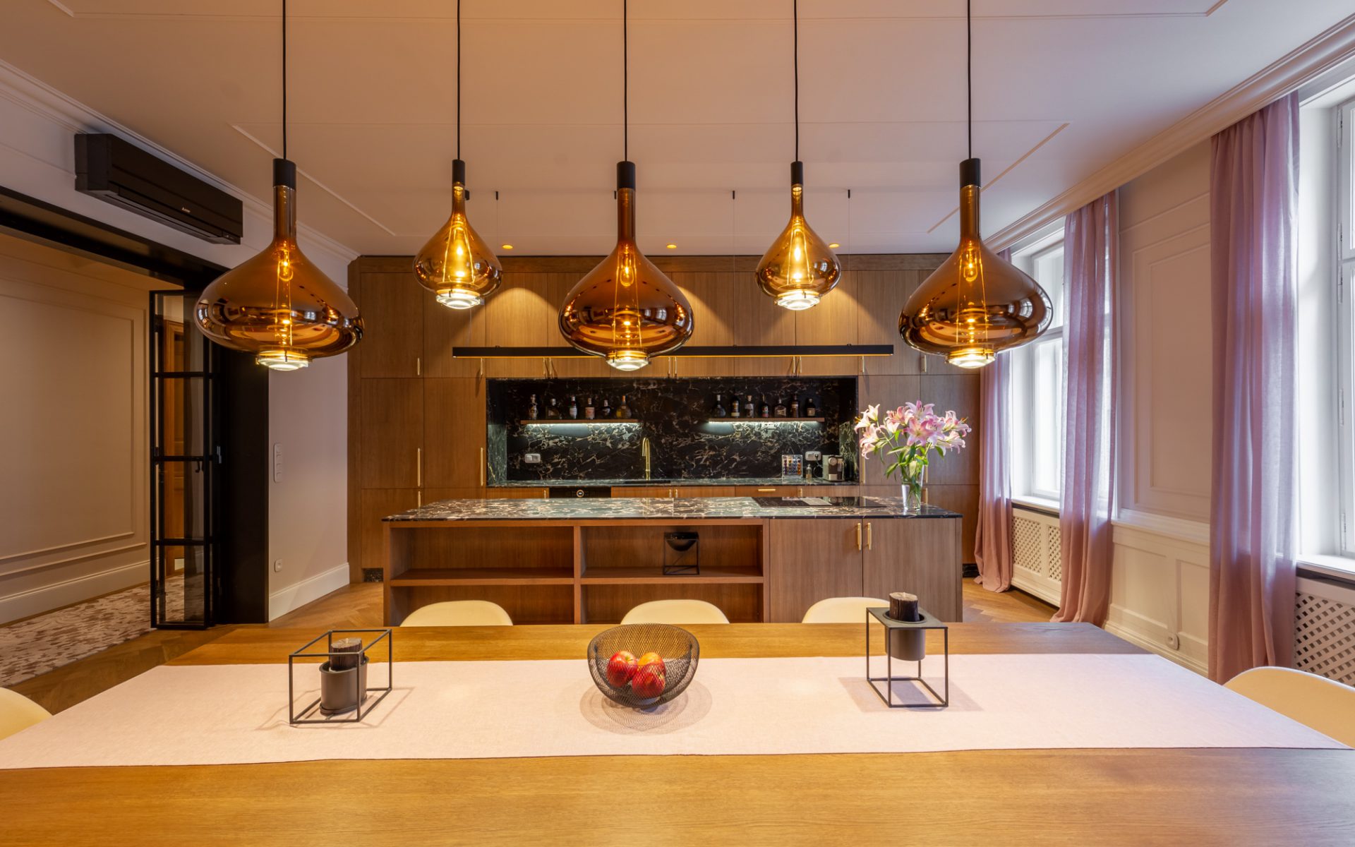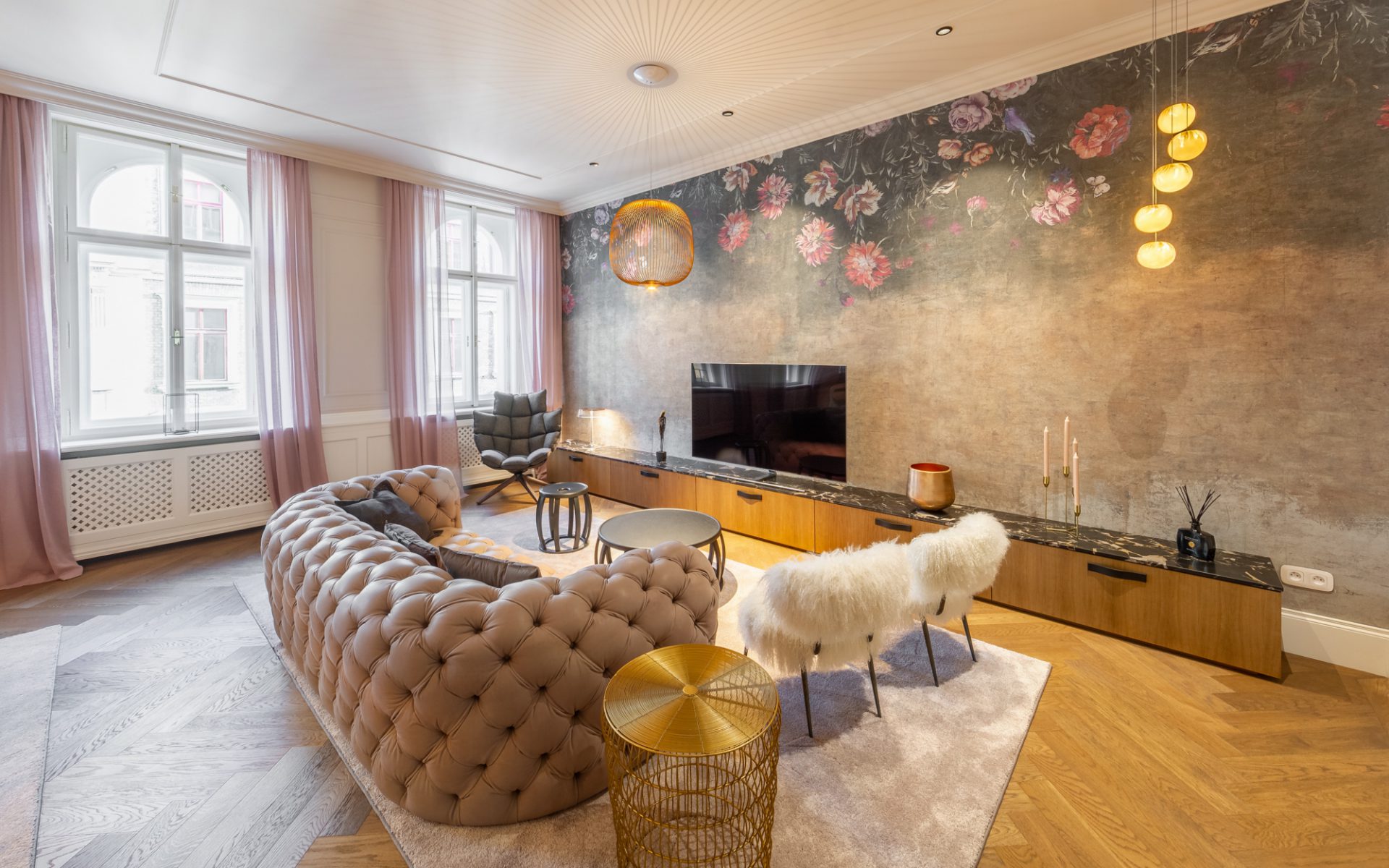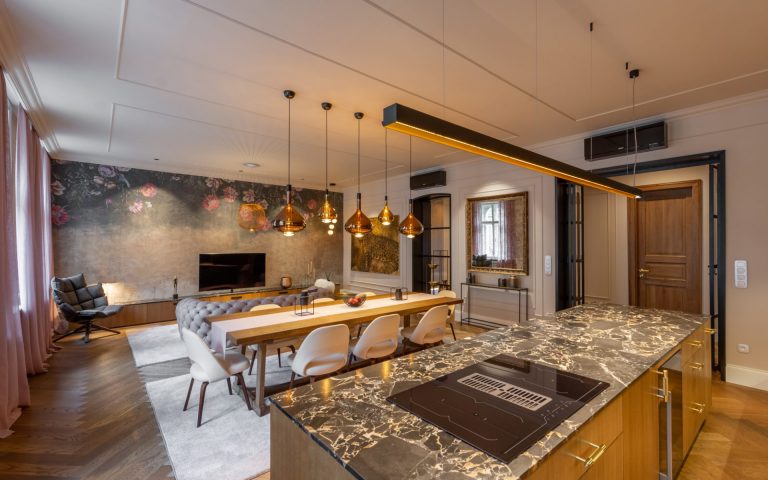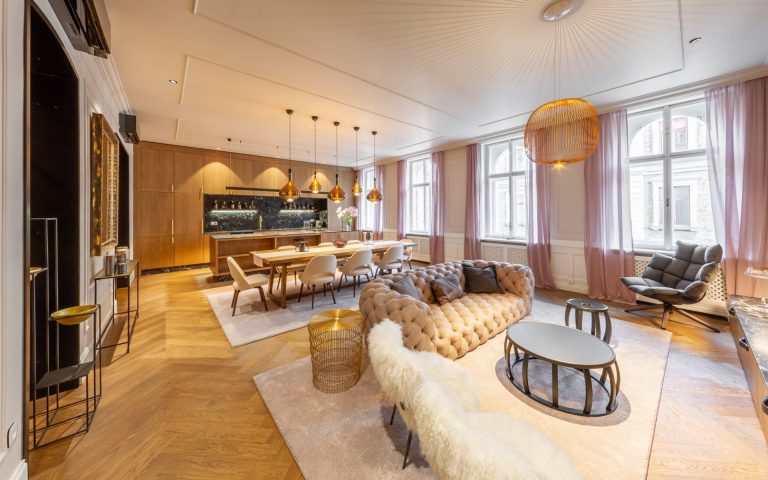 Reprezentativní byt s lodžií po kompletní nákladné rekonstrukci se nachází v úplném centru historické Prahy jen pár kroků od Václavského náměstí a Františkánské zahrady. Interiér bytu ve 4. podlaží je čerstvě dokončen ve vysokém standardu včetně kvalitního vybavení.